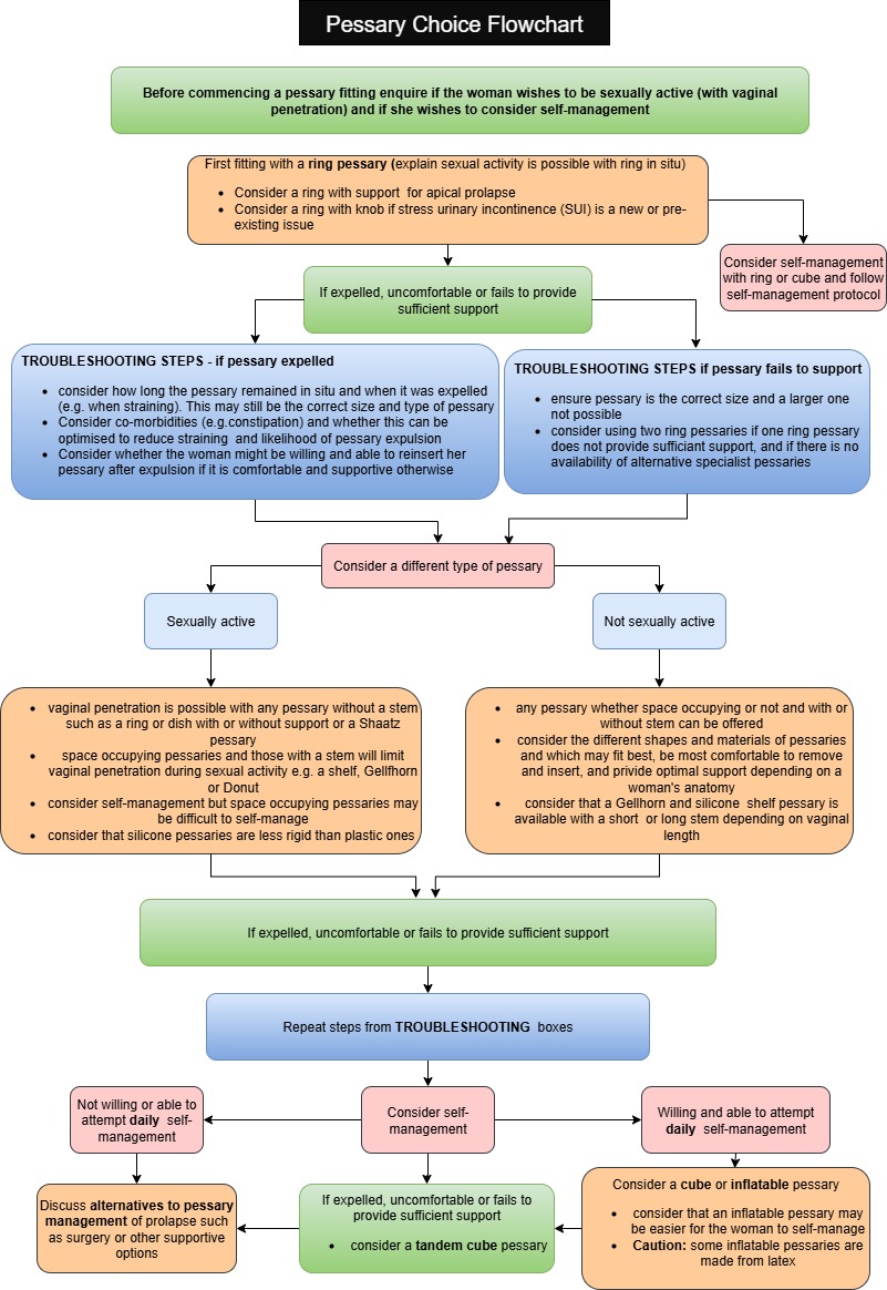 The sections on self-management of pessaries has been expanded to assist clinical use of this management option. This is supported by expanded patient information content.
